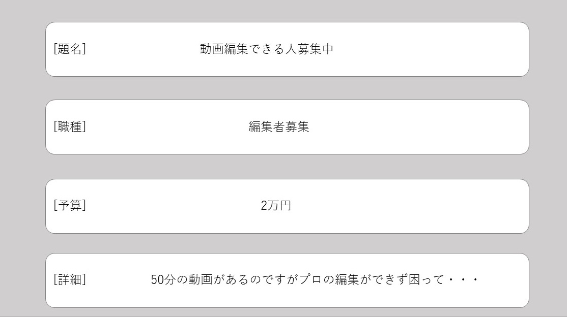 ・他の業務マッチングサイトだと仲介業者に依頼料金の何パーセントかが手数料としてかかるため、依頼料が高額になる。